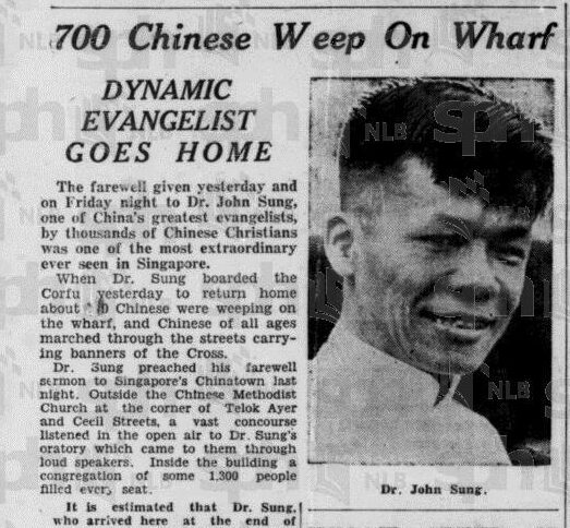 Rev Dr John Sung (1901-1944) On September 27, 1901, which was the Mid-Autumn Festival in the year of Xinchou on the lunar calendar, the sixth child was born in the home of Pastor Song Xuelian in one of the small villages in Xinghua County, Fujian Province. This was the time when the Song family was in its most depressed season and living in the poorest of times. The birth of this child could be said to have added another burden to the family’s difficulties, but due to the abundance of the life of Christ in the Song family, the newborn boy was given a commendable name: Lord’s Grace (主恩). This boy was Rev. Dr. John Sung, who was later regarded as the “Apostle of China.”